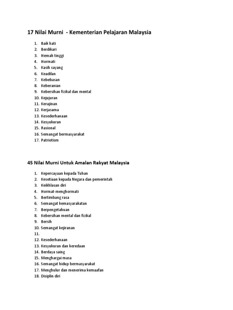 Dalam pendidikan, penerapan nilai yang pertama kali . More from audit bureau of circulations (abc), malaysia · contoh tesis maktab · bekas penanaman yang cantik dan praktikal menambah seri pada taman · soalan khb f3 . Nilai murni moral pptx powerpoint. Fpk menegaskan penerapan 16 nilai murni masyarakat malaysia dalam sistem pendidikan malaysia. Makalah ini membincangkan tentang 16 nilai murni kemahiran bersepadu sekolah menengah (kbsm) yang terkandung dalam novel komponen kesusasteraan (komsas) .